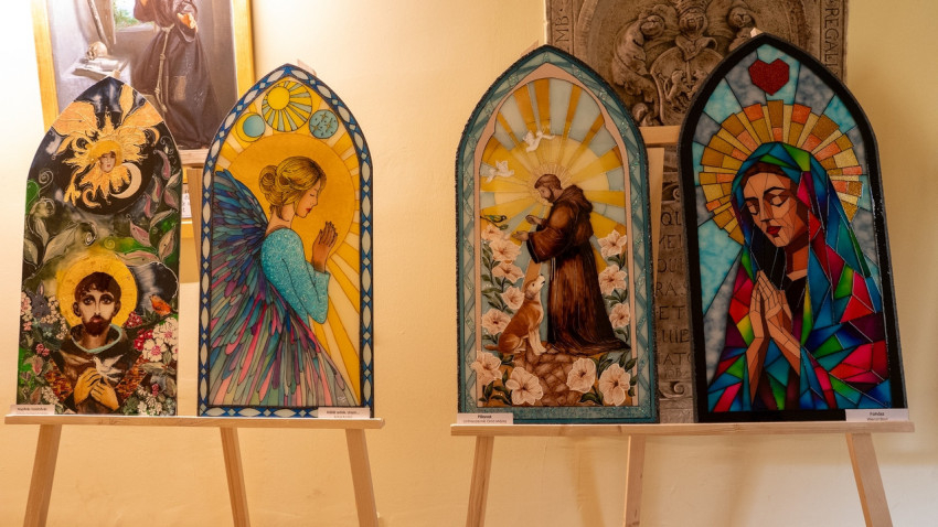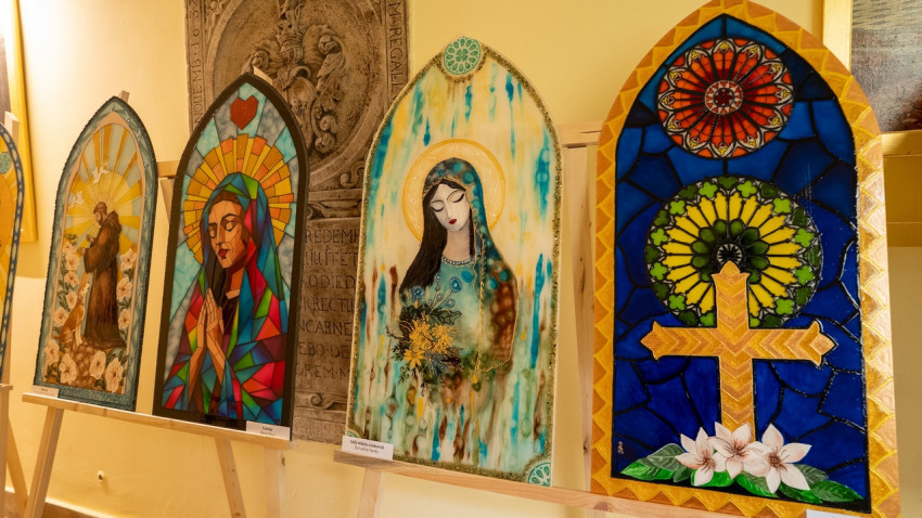 Ebből az alkalomból 44 modern üvegfestő művész alkotása tekinthető meg a szombathelyi ferences templom folyosóján.