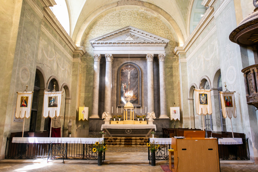 Miközben áthaladunk a Váli-víznek nevezett patakon átívelő míves téglahídon, feltűnik a magaslatra épült katolikus templom négy hatalmas oszlopával, timpanonos klasszicista homlokzatával. Kétszáz éves a Hétfájdalmú Szűzről elnevezett templom; a plébániai képviselő-testület, az önkormányzat és a helyi faluvédő egyesület szervezésében a jubileumot az egyházközösséggel együtt ünnepli az egész falu.