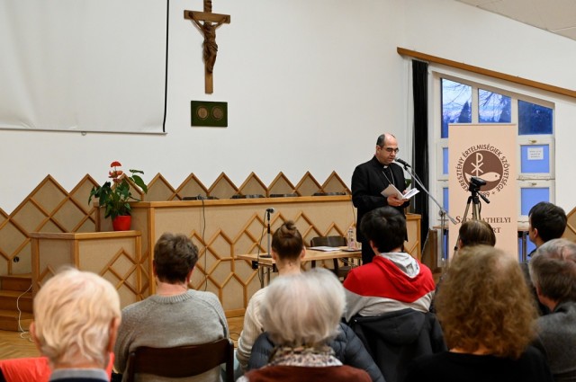 Korunk legnagyobb tévedése pontosan az ember titka körül van, korunk nagy szellemi kihívása pedig, hogy ki az ember, mi a szabadság, mi a létünk célja – fogalmazott előadása elején Székely János püspök. Ezután felolvasta a tanítása mottójául – „Válaszd az életet” – szolgáló szentírási részt: „Ma tanúul hívom ellenetek az eget és a földet: életet és halált, áldást és átkot tártam a szemetek elé. Így hát válaszd az életet, hogy te is, utódaid is életben maradjatok” (MTörv 30,19).