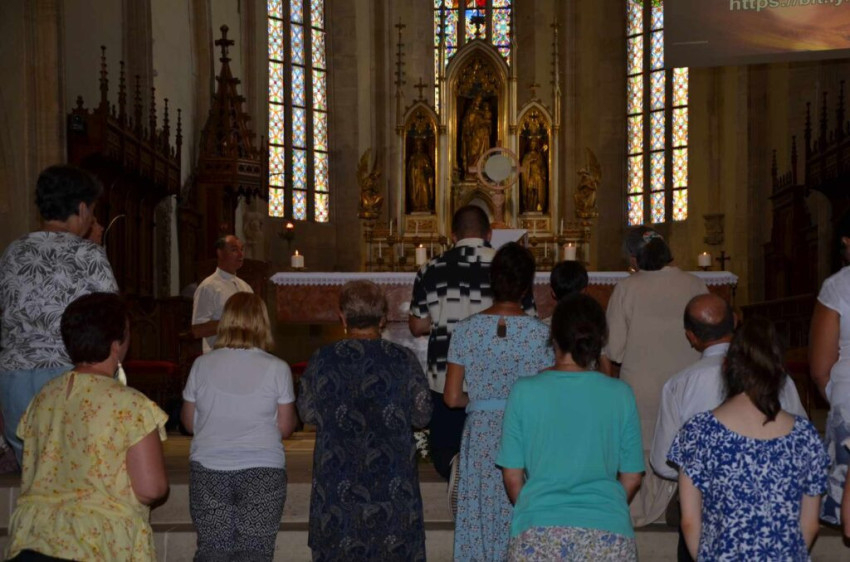 Ezután László Attila főesperes, plébános az oltárasztalra helyezte a szentséget, Mijo Barada pedig Istenről mint titokzatosan, a hit misztériumában közénk jövő valóságról beszélt. Kérte a résztvevőket, hogy tiszta lelkükkel járuljanak imáikkal az Úr elé és köszönjék meg életüket a mindenható Istennek. Leginkább azért legyenek hálásak, mert Isten elküldte Fiát, hogy megváltsa bűneiből az emberiséget és utat nyisson számára az üdvösség felé. Jézus halálával és feltámadásával győzedelmeskedett a halál, a bűn és a sátán fölött.