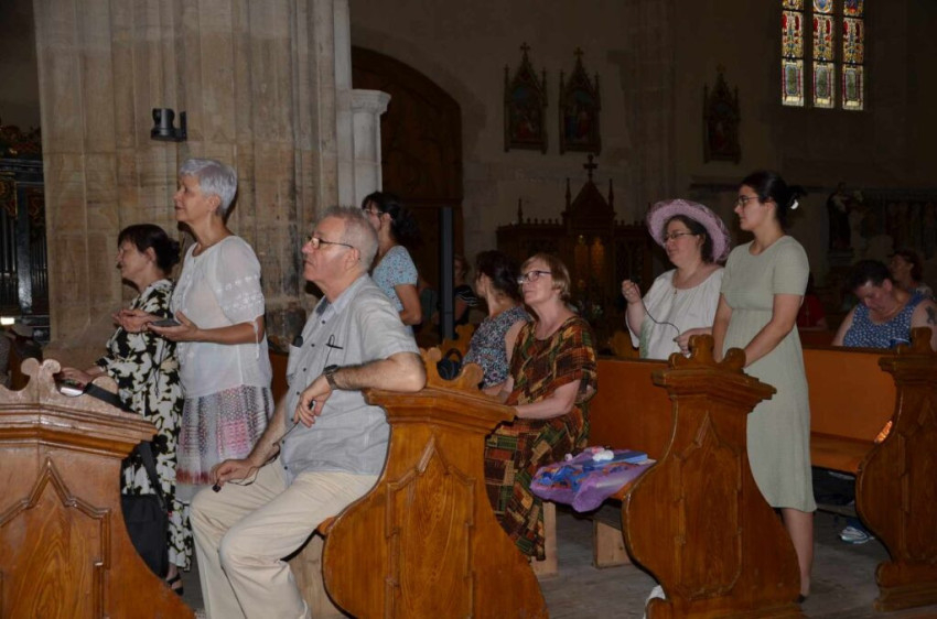 A hit, remény és szeretet felindításával a misszionárius a dicsőséges rózsafüzérről való elmélkedéseivel indította útra a tizedek imádkozását. Az előimádkozók segítségével a tizedekben a lelkinap résztvevői hol románul, hol magyarul kapcsolódtak be.
