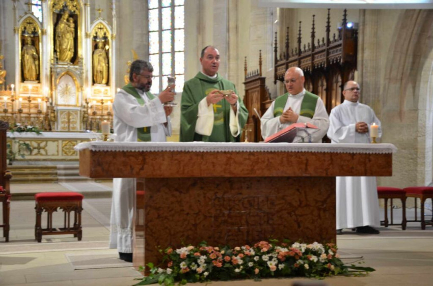 A szentmise bevezetőjében a Szent Mihály-templom plébánosa azért fohászkodott, hogy Isten ,,kegyelmei által tegye teljessé mindazt, amin ma munkálkodtunk”. A szentbeszédben Mellár József, a vajdasági törökbecsei plébános, a főcelebráns az aznapi evangéliumból (Mk 6, 7–13) alapján kiemelte, hogy Isten eszköztelenül küldi apostolait az örömhír terjesztésére, éppen azért, hogy teljesen Istenre tudjanak hagyatkozni, hiszen „a rendetlen aggodalmaskodás, félelem akadályozná lelki erejüket”. Aggodalmaskodó gondolatainkat hát mi is engedjük el, ahogyan Máté evangéliumában (6,34) is olvashatjuk: „Ne aggódjatok a holnap miatt, a holnap majd gondoskodik magáról. A mának elég a maga baja.”