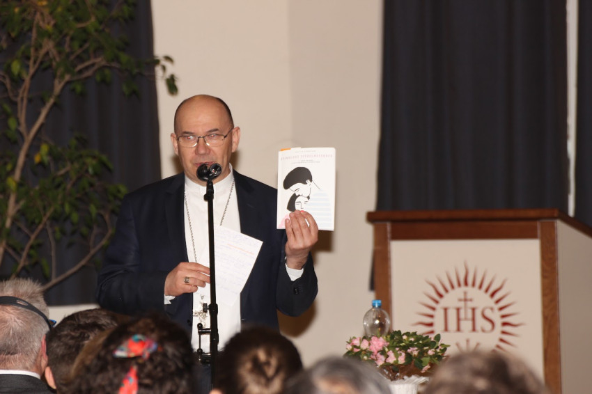 Marton Zsolt váci megyéspüspök, a Magyar Katolikus Püspöki Konferencia (MKPK) Családügyi Bizottságának elnöke beszédében Szent II. János Pál pápát idézte: „Fiatal pap koromban megtanultam szeretni az emberi szerelmet.” Utalva a könyv címére a főpásztor kifejtette: a kalauz eredetileg útmutatás, vezetés, tájékoztatás, de ha könyvről van szó, akkor iránymutató mű. Átvitt értelemben utazás. Az emberi élet is egy nagy utazás, a II. Vatikáni Zsinat szerint az Egyház nem más, mint Isten vándorló népe, úton lévő közösség ebben az életben az örökkévalóság felé. Ezen az úton haladnak házaspárok, családok, egyedülálló emberek. Ferenc pápa különös jelentőséget tulajdonít a szinodalitásnak, az együtt haladásnak az úton. Útikalauz szerelmeseknek, tehát olyan embereknek, akik Isten útján haladnak.