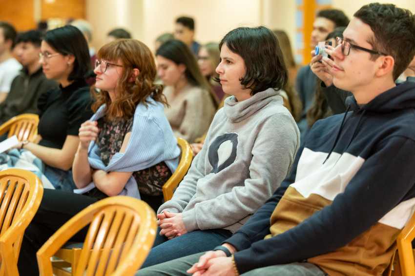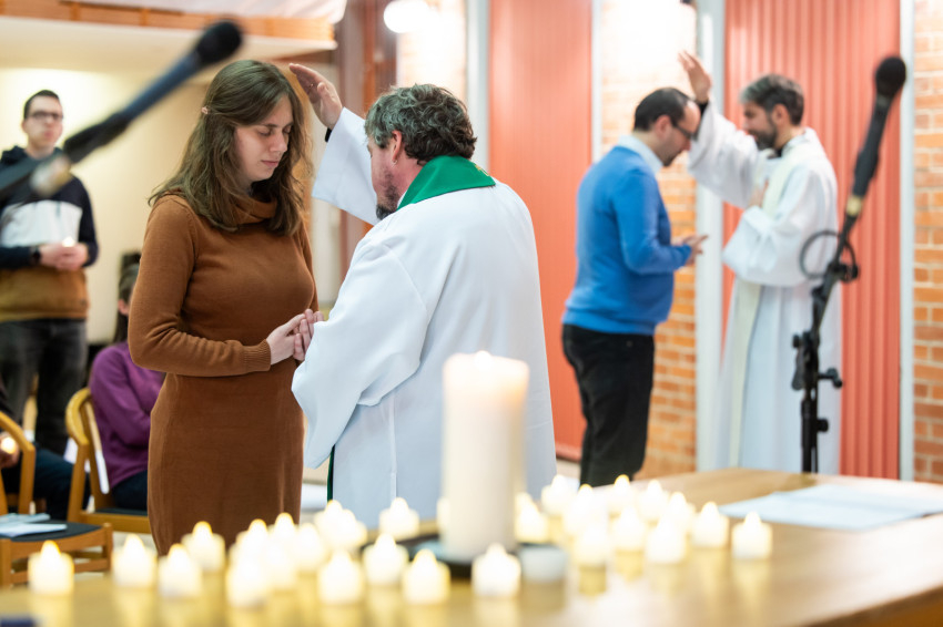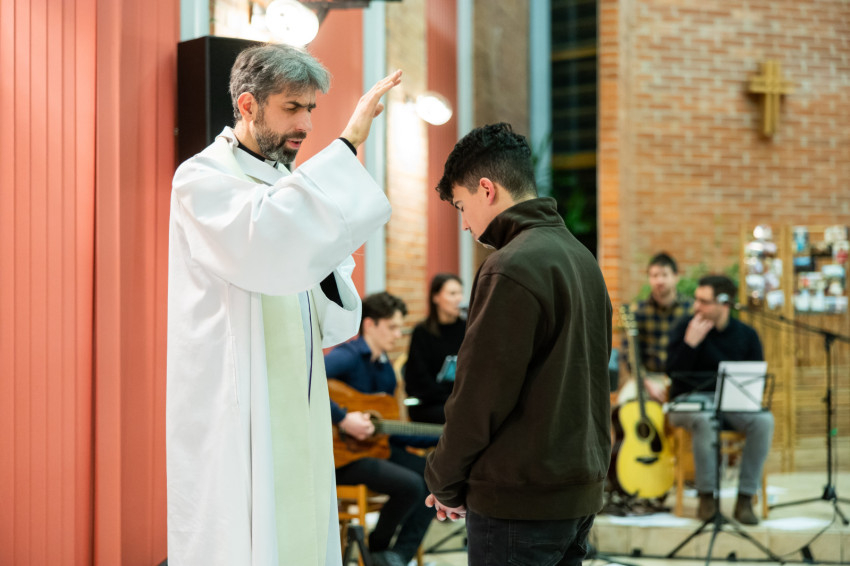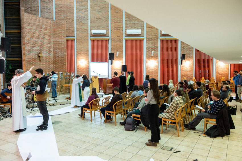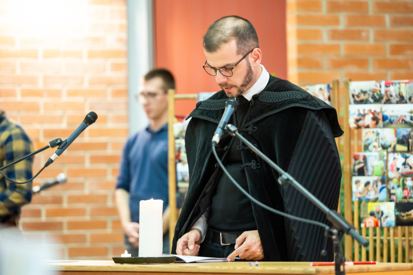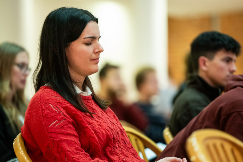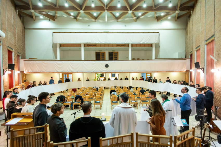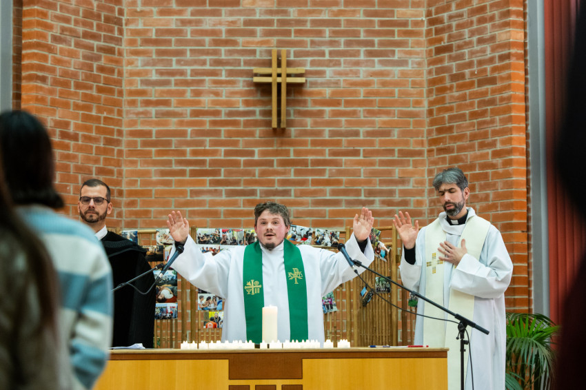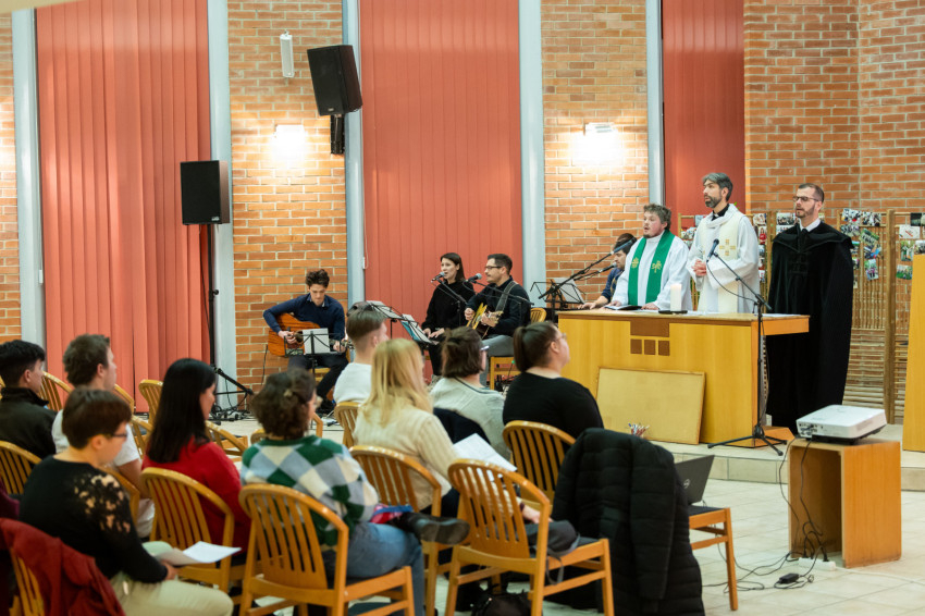 „Az előbb láttuk, milyen helyzetbe kerültünk mi, emberek a saját erőnkből, de most azt nézzük meg, Istennek mi a válaszlépése erre, hogyan változtatja meg ezt a helyzetet” – mondta, majd a fiatalokat arra kérte, hogy egy nagy kört alakítsanak ki a kápolnában.