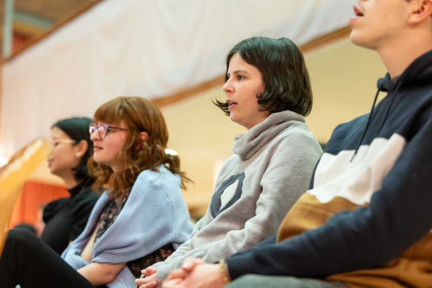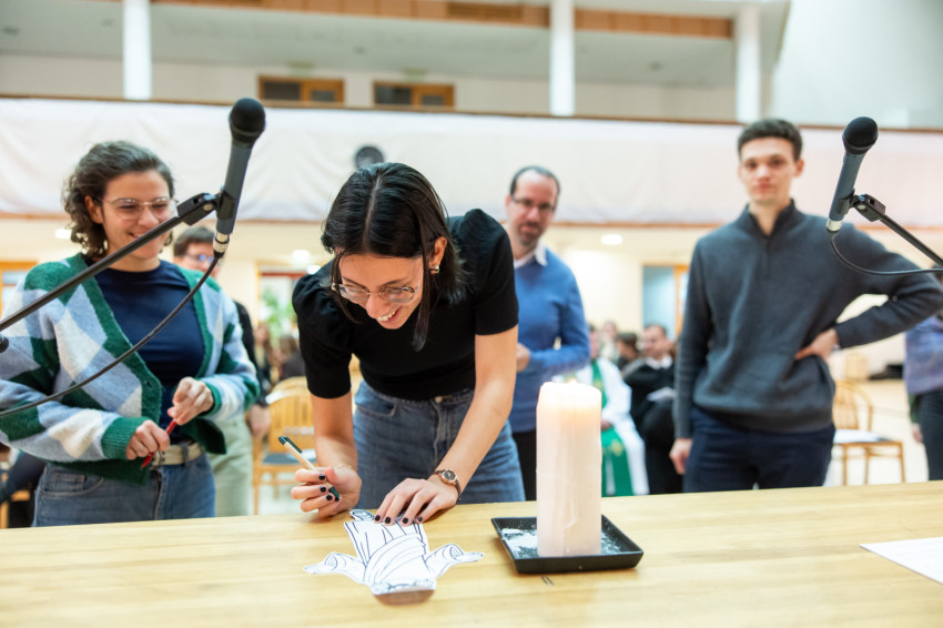 Az imaesten a fiatalok többféle feladatot kaptak. Gombkötő Beáta elsőként arra hívta őket, hogy gondolják át, milyen személyes tapasztalataik vannak arról, hogy szakad az Egyház testi-lelki egysége.