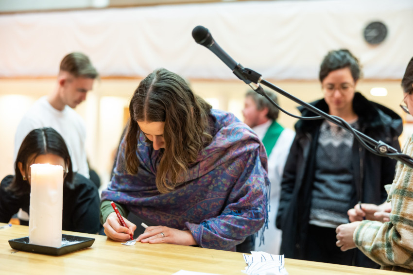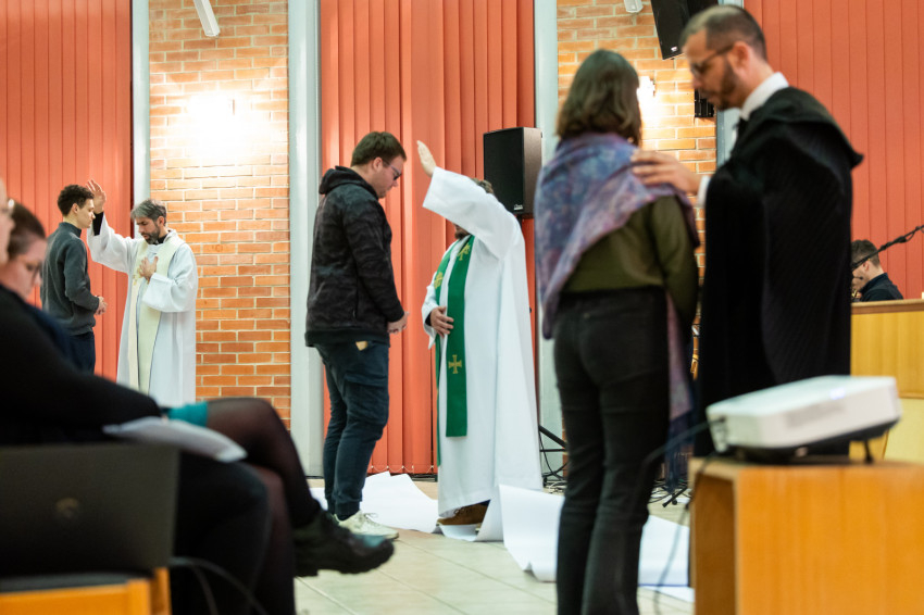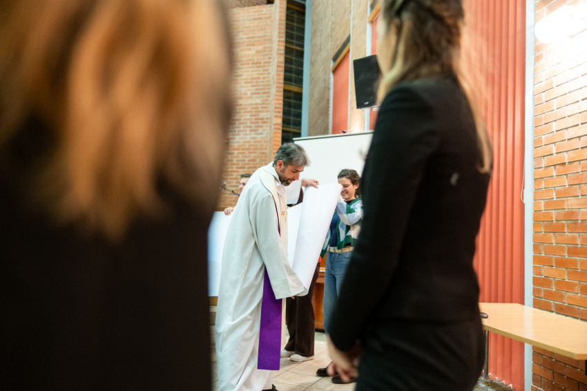 Arra hívta a résztvevőket, hogy az oltáron lévő szétszakított papír Krisztus-alak darabjaira írják fel a saját rossz tapasztalataikat, majd azt is, ki mit tesz hozzá az Egyház építéséhez.