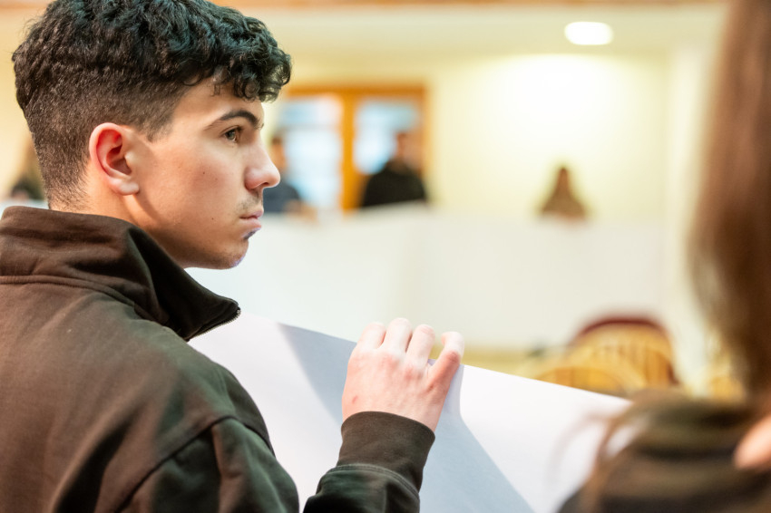 Ennek a jeleként a fiatalok feljebb emelték a papírt maguk előtt.