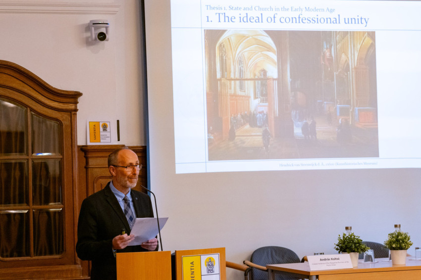 A második nap elején Péter Kónya a görögkatolikus egyház kialakulását tárgyalta a hosszú 17. század keretében. A kérdés itt már önmagában is túlmutatott a megszokott katolikus–protestáns kettősségen. Az ungvári, munkácsi és máramarosi uniók nyomán létrejövő egyházi szerkezet nem egyetlen etnikai vagy politikai logika szerint szerveződött; inkább olyan tartós intézményi formát öltött, amely ruszin, magyar és szlovák kötődéseket is összefogott. Ez különösen fontos tanulsága volt a konferenciának: