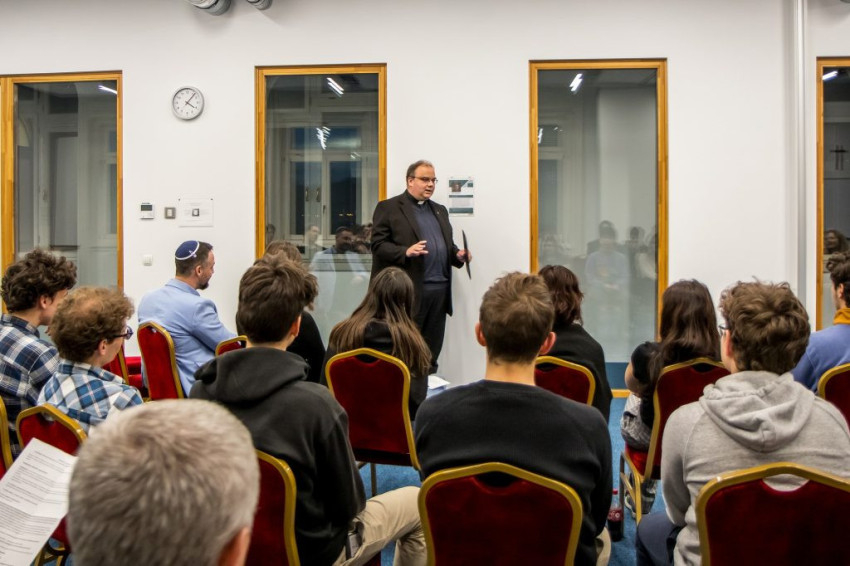 Zsódi Viktor piarista tartományfőnök beszédében a vallásközi kapcsolódások jelentőségét hangsúlyozta, és összefoglalta a zsidó–katolikus párbeszéd alakulását az elmúlt évtizedekben és a jelenben, Ferenc pápa egyházkormányzása idején.