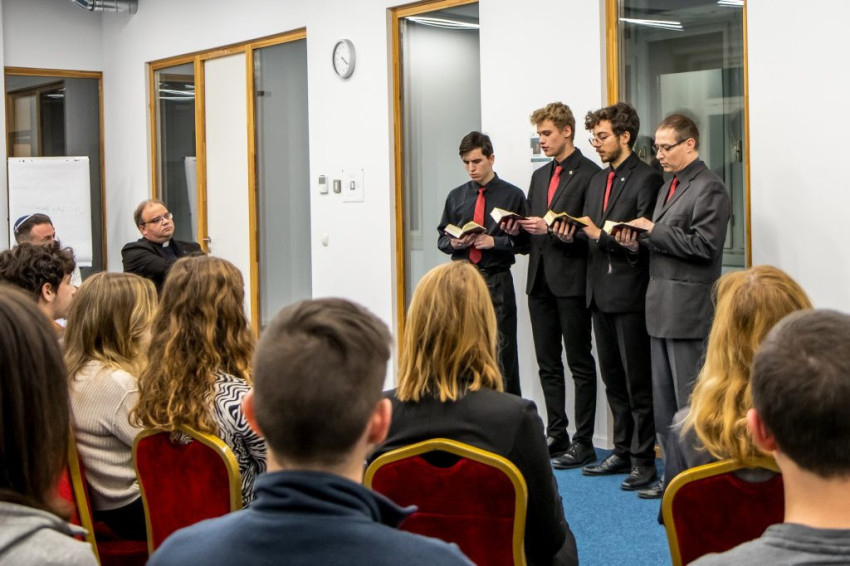 A Lauder diákjai ezután a foglyok szabadulásáért könyörgő imát mondták el héberül és magyarul, majd Valaczka András, a Piarista Gimnázium tanára Erdő Péter bíboros szavait idézte a Miatyánk zsidó gyökereiről. Ezt követően a piarista diákok el is imádkozták az Úr imáját.