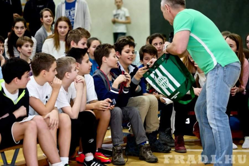 Az iskola tanulói előbb egy kisebb játékban vehettek részt: aki tudta az FTC-vel kapcsolatos egyre nehezedő kérdésekre a helyes válaszokat, Fradi-nyereményt kaphatott.