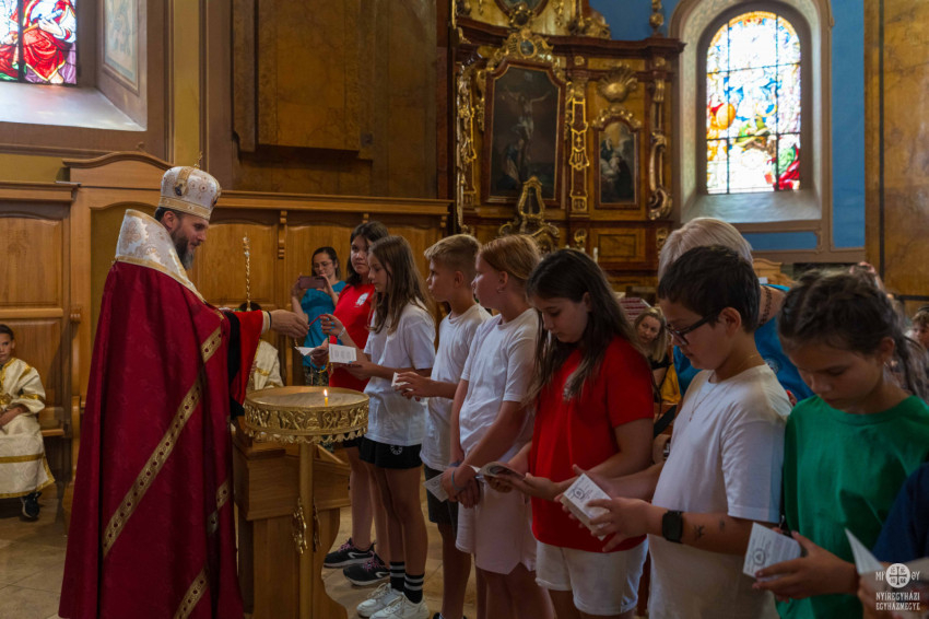 A szombati nap lelki csúcspontját a közös Szent Liturgia jelentette, amelyet Bodnár Attila és Kicsák János görögkatolikus papok mutattak be az indiai Tete Remis atyával, a Pápai Missziós Művek magyarországi megbízottjával együtt. A liturgián részt vett Szocska A. Ábel megyéspüspök is, aki prédikációjában arról beszélt a gyermekeknek, hogy a keresztény ember sosem reménytelen, mert Isten segítsége mindig elérhető. A püspök egy szemléletes példával érzékeltette ezt, hangsúlyozva, hogy mi a missziós gyermekek feladata: