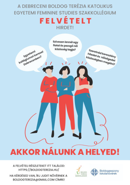 „Ha szeretnél egyetemi éveid alatt egy olyan fiatalos, értelmiségi női közösség tagja lenni, ahol keresztény hitedet bátran megélheted, gyakorolhatod, jelentkezz!” – szól a felhívás.