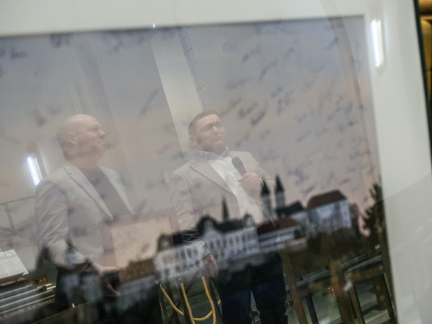 Az ötletgazdának, Udvardy György érseknek külön köszönetet mondott, majd Vörös Tamással egy, a megújított várnegyedről készült, aláírt képet adtak át neki.