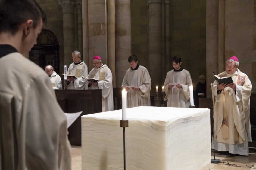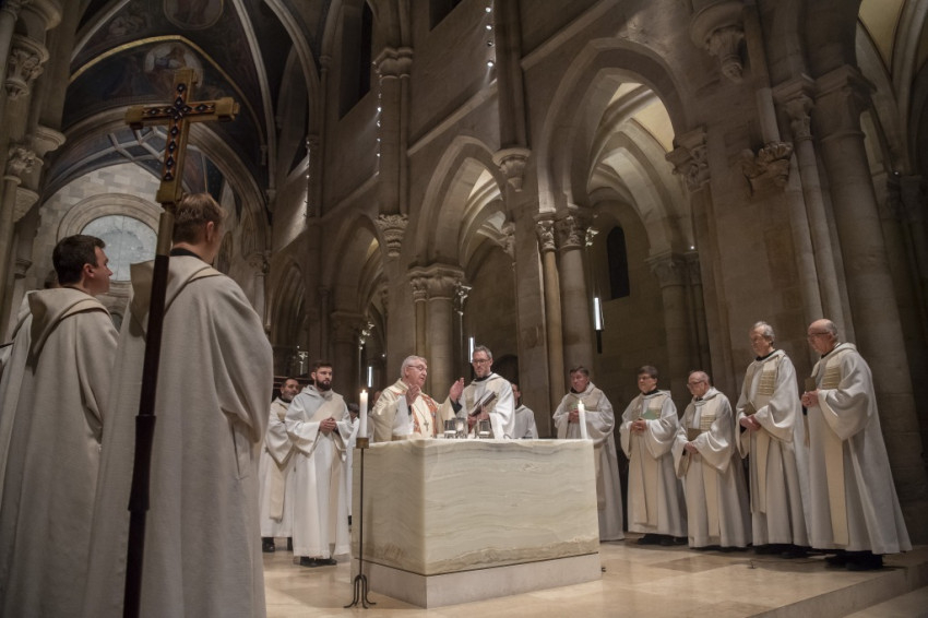 A pannonhalmi bazilikában bemutatott hálaadó szentmisén Matusz Hugó perjel mondott szentbeszédet. „Mindnyájan Isten szeretetéből érkezünk a világba. És Isten szeretetéből épült nekünk ez a világ otthonunkká. És Isten azóta itt sétál az alkony hűvösében, a nappali szellőben, keresi és szólítgatja az embert, hogy találkozzon vele, hogy meggyógyítsa, magához kapcsolja” – kezdte szentbeszédét a pannonhalmi perjel, majd a felolvasott szentírási részekre utalva rámutatott: „A bűnbeesés története egy törékeny emberpár képét mutatja fel, akiket a lehetőségek csábítása könnyen elterel a döntés következményinek latolgatásától. A felelősség kusza, de a hatás letaglózó. A bűn sebet ejt, elvész a biztonság és az otthonosság. Az ember Istennel való kapcsolatában zavar támad, szégyen és idegenség tolakszik be. A kert kapuja bezárul, az ember világának legfontosabb része – ahol az ember Istennel sétálhatott – elérhetetlenné válik.