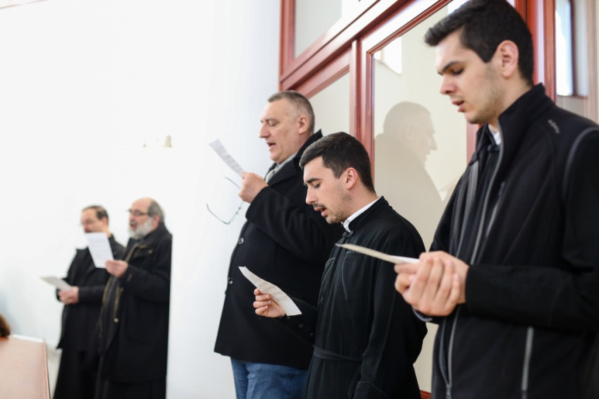 A találkozó közös vecsernyével kezdődött, melyet Bazil remete és Kasszián szent életű atya tiszteletére imádkoztak, akiket február 28-án ünnepelnek a bizánci rítusú katolikusok. Az alkonyati zsolozsmát Kocsis Fülöp érsek vezette, az énekes szolgálatot a görögkatolikus szeminaristák kórusa látta el.