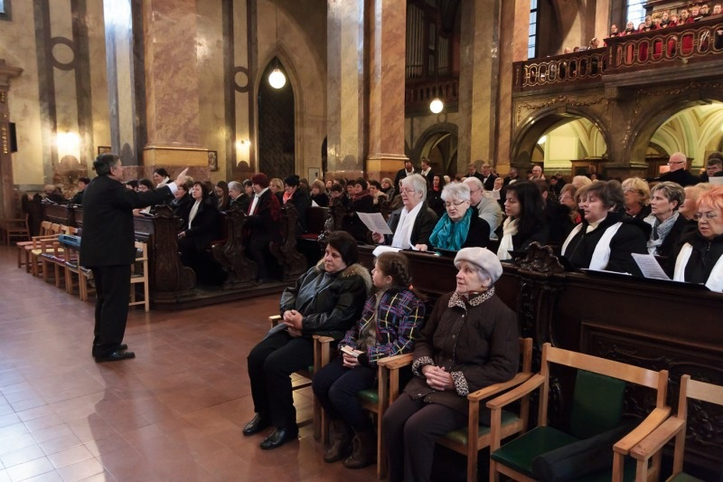 A szentmisén az aznapi egyházmegyei kórustalálkozó résztvevőiből álló összkar végezte a zenei szolgálatot. A liturgia végén a főpásztor, a koncelebráló papság, az asszisztencia és a jelenlévők együtt imádkoztak a vértanú püspök közbenjárásáért és szentté avatásáért, majd a bazilika Palestrina kórusa előadta Charpentier Te Deum című művét. Ezt követte a részt vevő kórusok bemutatkozása.
