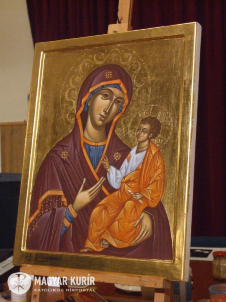 Ebben az évben a megfestésre kiválasztott képmás egy, az athéni Bizánci Múzeumban őrzött 15. századi ikon, az úgynevezett Odigitria (Útmutató) Istenszülő volt. A résztvevők szabályosan elkészített, merevítővel ellátott, alapozott és csiszolt fatáblákkal érkeztek, és a munka felrajzolásával kezdték meg tevékenységüket. A felrajzolás után következett az aranyozás valódi arannyal és a poncolás (az aranyozás felületén ismétlődő díszítő motívumokat alkalmazó eljárás). Ez a művelet különösen fontos, mert Pavel Florenszkij, a zseniális orosz teológus szerint „az ikont fényre festik”. Ez azt jelenti, hogy az ikonon az arany segítségével ábrázolt isteni fény Krisztus színeváltozásának fénye; ez árad ki a világra Krisztus jelenlétével, és ez a fény, a Szentlélek fénye ragyog minden szent ember arcán, mindazokén, akiket ikonon is ábrázolni lehet.