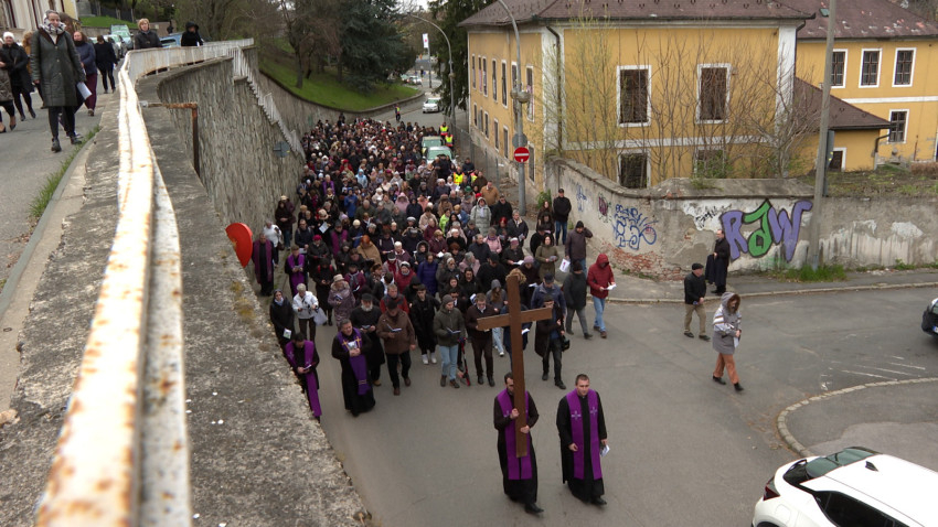 Úgy fogalmazott, megrendítő a tudat, hogy ezt az utat először Jézus Krisztus járta, értünk hordozva a keresztet. Amikor vonulunk, gondolnunk kell arra, hogy ez nem egy demonstráció, hanem zarándokok útja, akik Krisztust követik. Az Ő nyomában járunk, bűneink bocsánatáért esedezve.