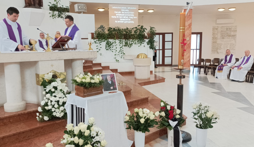 A hamvak beszentelését követően a megjelentek gyászmenetben kísérték végső nyughelyére Kinga nővért.