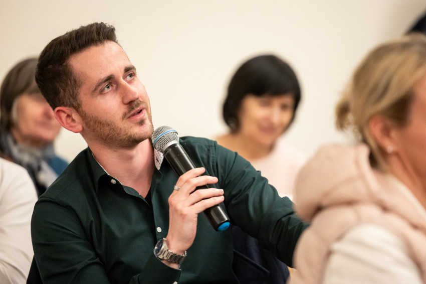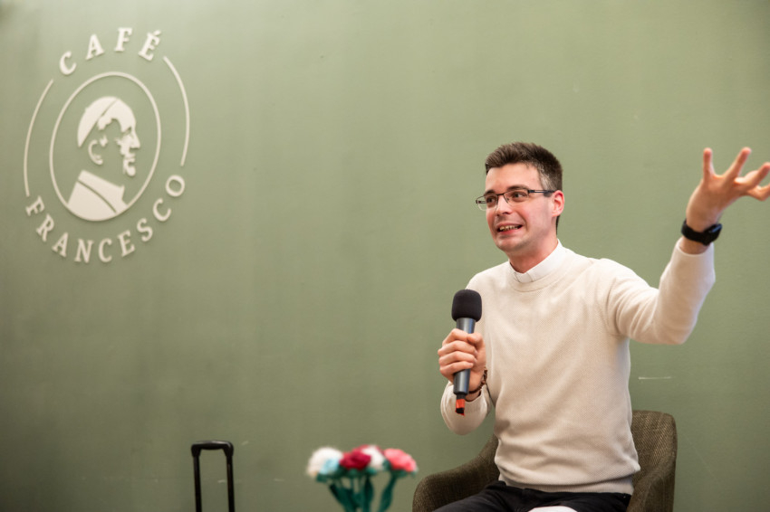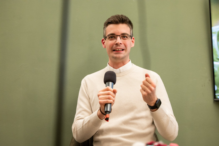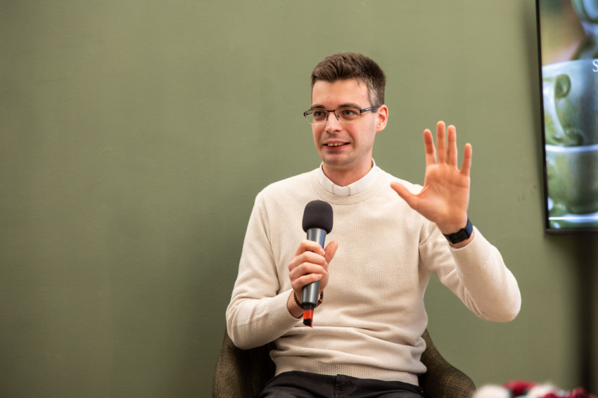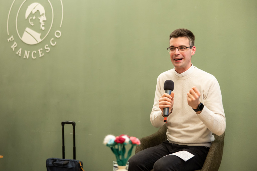 Riesz Benedek ezután megosztotta a hallgatósággal saját papi elhívása történetét. Eltervezte az életét, a párkapcsolatát, a vállalkozását, amikor Isten közelített, mélyebben belépett, és átírta mindezt. „Megmutatta, hogy létezik annyira, hogy érinteni lehet a közelségét.”