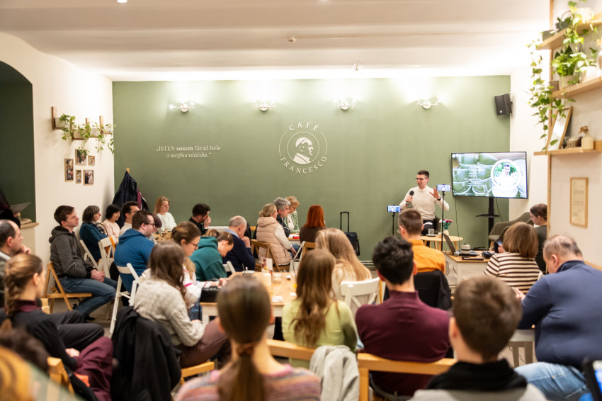 Hogyan érdemes élni, hogyan lesznek a mindennapjaim még inkább élhetők? – tette fel a kérdést Riesz Benedek, mellyel bevezette a kedd esti előadás témáját. Meghívta a hallgatóságot arra, gondolják át, mit láttak legutóbb igazán szépnek, mert ami igazán szép, az a szívvel érzékelhető és Istenről beszél. „Néha van bennem hiányérzet, amit teszünk, elég szép-e.