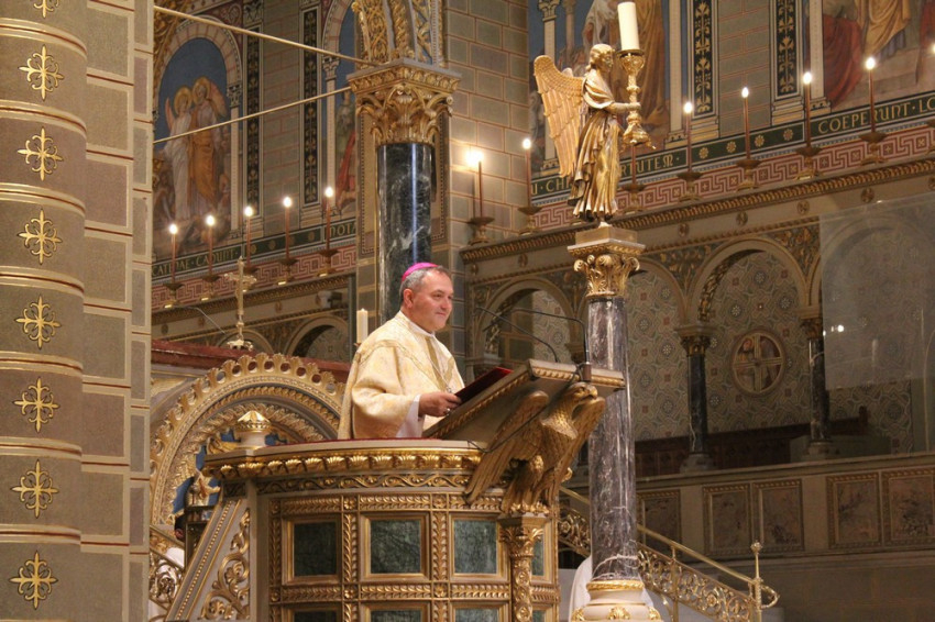 A megyéspüspök idézte Radnóti Miklóst: „Ember vigyázz, figyeld meg jól világod: / ez volt a múlt, emez a vad jelen, –/ hordozd szivedben. Éld e rossz világot / és mindig tudd, hogy mit kell tenned érte, / hogy más legyen” (Radnóti Miklós: Nem bírta hát...).