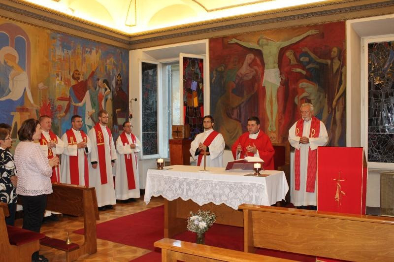 A szentmisét Tóth Tamás pápai káplán, rektor mutatta be. Az itt tanuló papok és az itt szolgálatot teljesítő három munkatárs mellett koncelebált a Vigilancia Bizottság elnöke, Szentmártoni Mihály jezsuita, Melo Lajos domonkos szerzetes, valamint Kovács Gergely pápai káplán, a Kultúra Pápai Tanácsának irodavezetője, aki az ünnepi szentbeszédet tartotta.