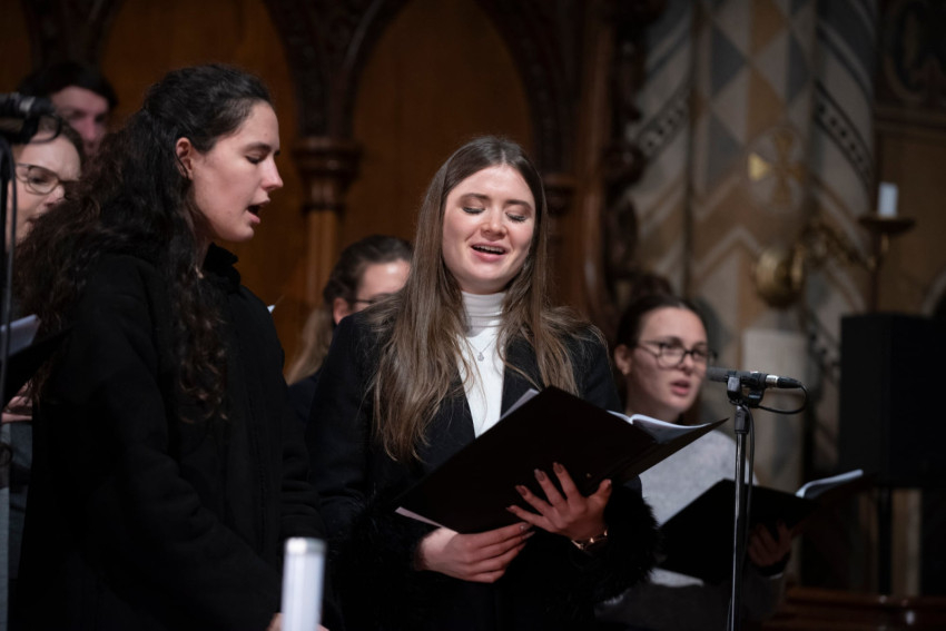 A szentmise zenei szolgálatát a Kodály Zoltán Magyar Kórusiskola látja el; vezényel Sapszon Ferenc karnagy.