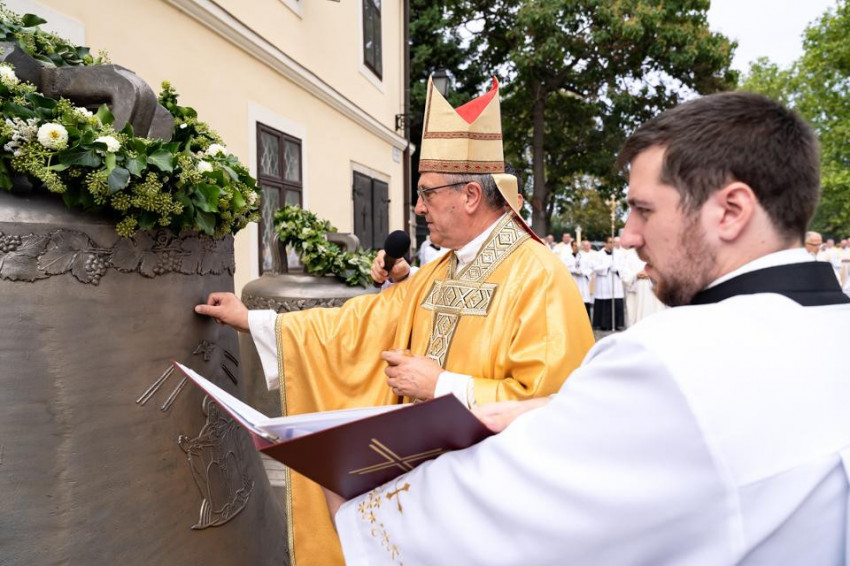 „Hitünk őszinte kifejezése akar lenni ez a hat új harang, amit felszentelünk. Legyenek ezek a harangok egyházmegyénk minden lakójának és e város lakóinak is minden kondulásukkal Istenhez hívó üzenet. Legyenek templomi közösségeink erősítői, egyéni és családi imaéletünk megújítói. Hangjuk vezessen bennünket a hit útján és őrizzen meg minket a bajoktól és eltévelyedésektől” – zárta szentbeszédét a főpásztor.
