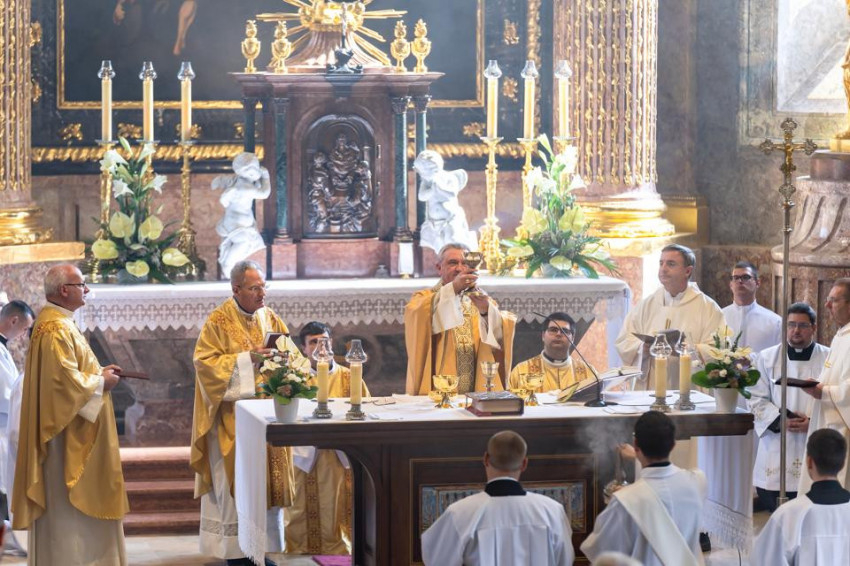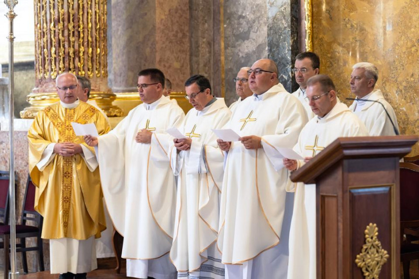 A szentmisén a püspökök mellett koncelebráltak Kiss Róbert, a Nagyszombati Főegyházmegye általános helynöke, a Győri Egyházmegye papsága, karmelita és premontrei szerzetesek.