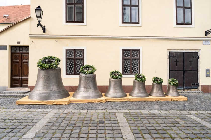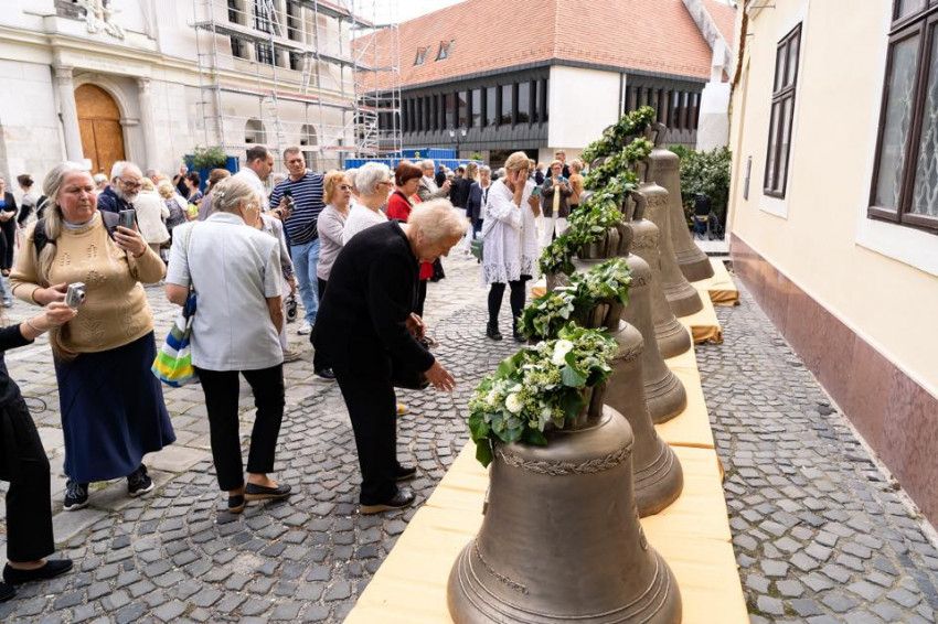 „A Nagyboldogasszony-székesegyház belső felújítása a befejezéshez közeledik, csak a karzaton magasodik állványzat, ami mögül felsejlik az új orgonaszekrény. A külső megújulás javában zajlik. Egy év múlva kerül sor a székesegyház újraszentelésére, addigra befejeződnek a rekonstrukciós munkálatok. Ez az év is különleges: ma új harangokat szentelünk – emlékeztetett a szentmise bevezetőjében Veres András megyéspüspök. – Egykor hét harang lakott a toronyban. Később, az első világháborúban rekviráltak négyet, majd a második világháború folyamán használhatatlanná vált három harangból öntötték a ma is szolgáló Magyarok Nagyasszonya-harangot. Most megérkeztek a harang testvérei. Nagy ünnep ez a Győri Egyházmegye számára. A harang Istenre irányítja figyelmünket.”
