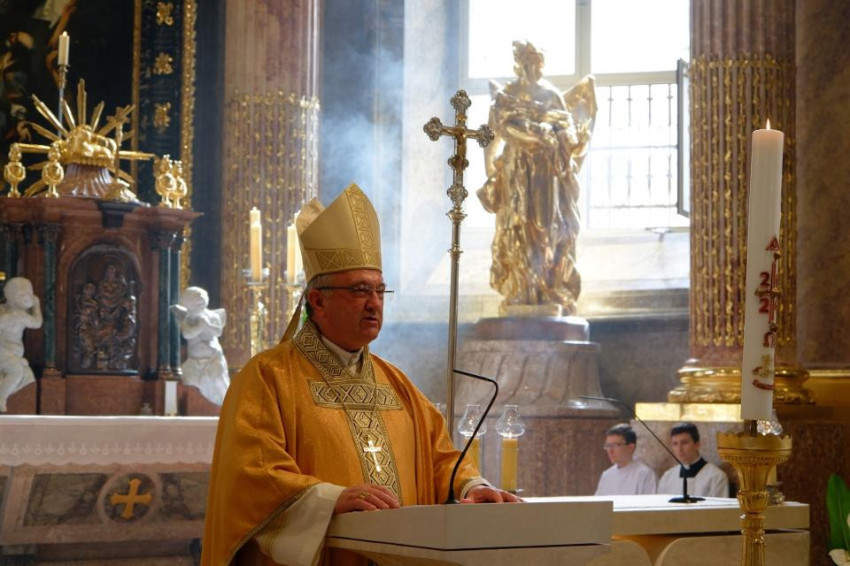 A feltámadás ténye valóban áthatotta életünket, gondolkodásunkat, érzéseinket? – tette fel a kérdést Veres András püspök, majd Jakab apostol kijelentését idézte prédikációjában: a hit tettek nélkül halott (vö. Jak 2,14-24.26).