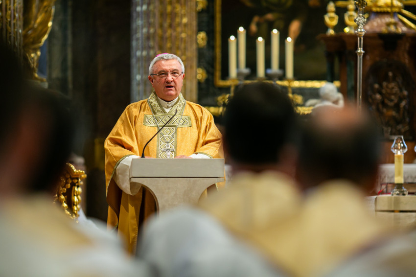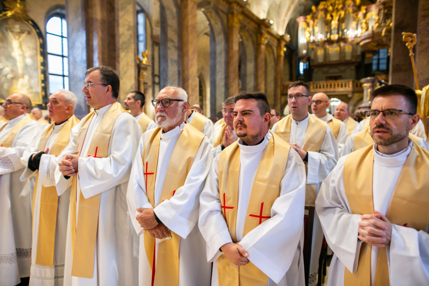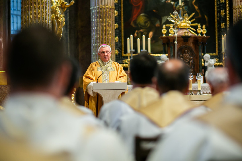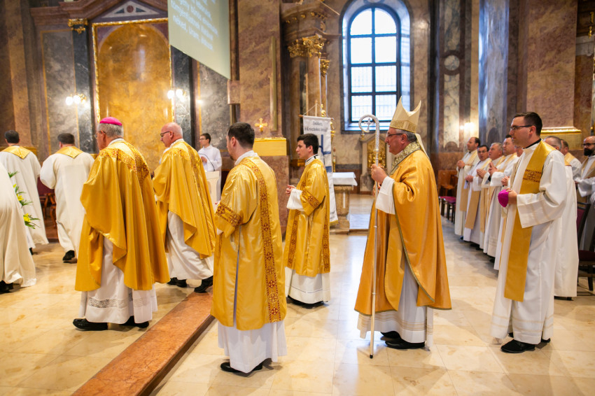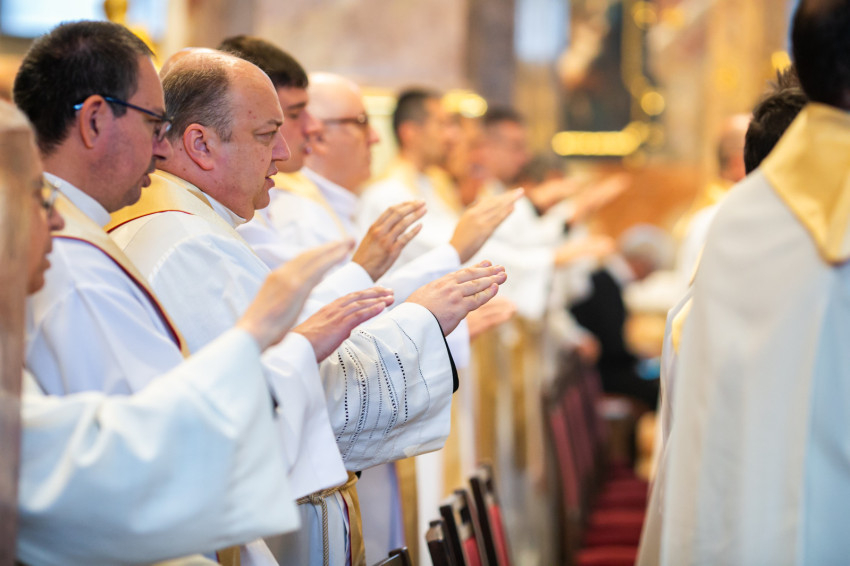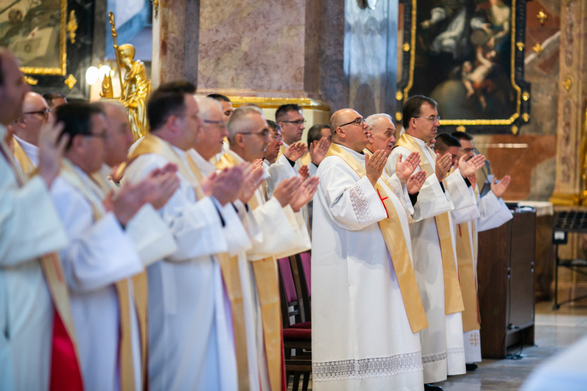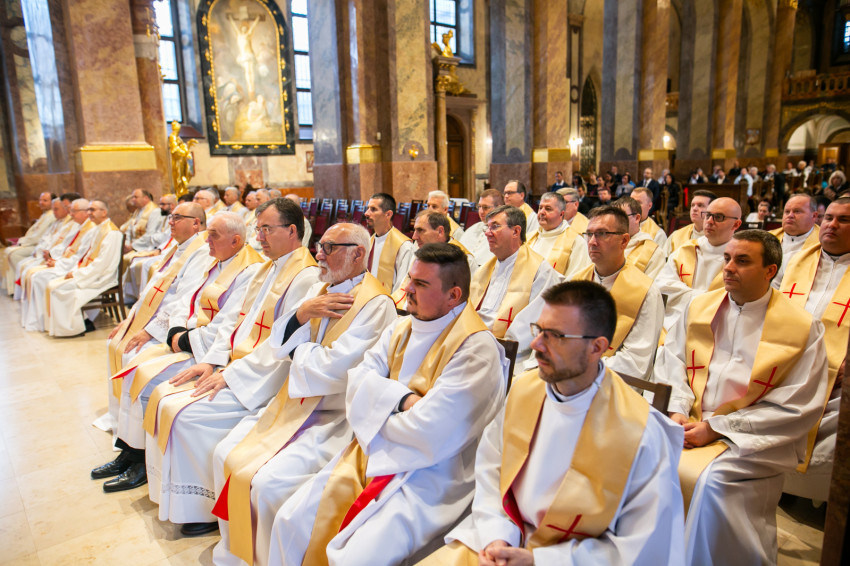 Homíliájában Veres András a megújulás útjáról beszélt, melynek során istengyermekségünkhöz kell visszatalálnunk. A létünk Isten ajándéka, s még nagyobb ajándék, hogy Isten megváltott gyermekeinek tudhatjuk magukat. Ezt a keresztségben kaptuk meg, s általa vagyunk az örök élet várományosai. Isten szentségeivel építi és tartja életben bennünk az istengyermekséget, Jézus pedig az Egyházra bízta, hogy a szentségek kiosztója legyen, amiben a paptestvérek kaptak rendkívüli szolgálatot. De mindnyájan, akik meghívást kaptunk ebbe a közösségbe a keresztség által, egyetlen és mindennél fontosabb célt kell hogy lássunk magunk előtt: