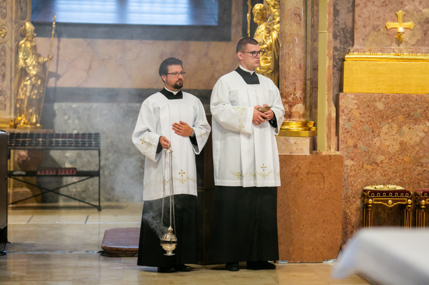 A szentmisén koncelebrált az egyházmegye papsága, köztük Pápai Lajos emeritus győri megyéspüspök; Reisner Ferenc általános püspöki helynök; Kálmán Imre püspöki irodaigazgató; Böcskei Győző, a székesegyház plébánosa; Fazakas Márton premontrei apát; Németh Gábor, az MKPK irodaigazgatója.