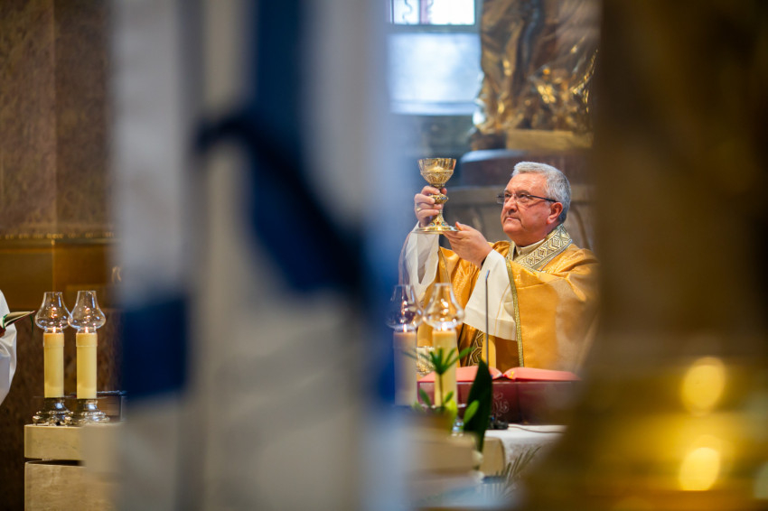 A főpásztor feltette a kérdést: Miért sírt Jézus Jeruzsálemben? Látta, hogy folyik az adok-veszek, de nem ez volt az ok, hanem az, hogy aggódott népéért, mely letért arról az útról, melyre Isten kiválasztotta. Szívében távol jár ez a nép – ez bántotta Jézust. Meg voltak elégedve: van templom, vannak szolgálattevők, folynak a szertartások. Ez kielégítette az embereket, a választott népet. Nem vagyunk mi is hasonló helyzetben? Jézus határozottan lépett fel. Szembesítette az embereket: ez Isten háza, az imádság háza. Ma is az.