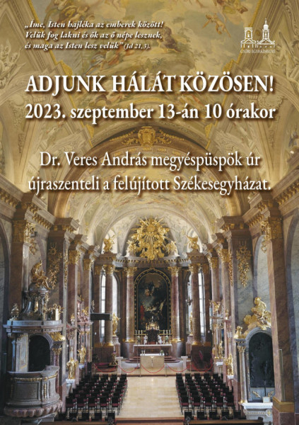 A Győri Egyházmegye életének egy nagyon jeles eseményéhez érkeztünk, amelyre már nyolc hónapja készülünk. Egyházmegyénk legfőbb temploma, a győri székesegyház többéves nagyszabású felújítás során kívül-belül megújulhatott. Ezért szükséges, hogy közösen adjunk hálát Istennek, és ezt a munkát a székesegyház újraszentelésével zárjuk le. Erre az ünnepre 2023. szeptember 13-án délelőtt 10 órakor kerül sor.