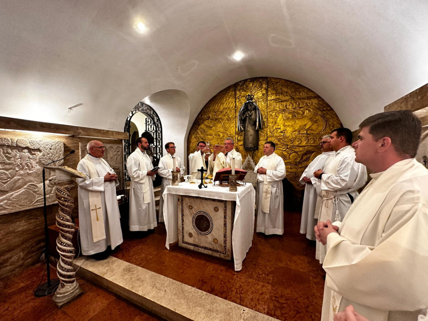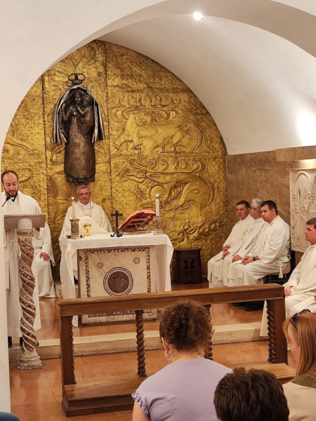 Kedden a Szent Péter-bazilikában található Magyarok Nagyasszonya-kápolnáját teljesen megtöltötték a Kecskemétről és Budapestről érkezett zarándokok, akik számára Veres András győri megyéspüspök, a MKPK elnöke mutatott be szentmisét számos zarándok pap koncelebrálásával. Szent Jusztinuszt idézve Veres András azt mondta, hogy „az angyali üdvözlet során Máriában először a hit fogant meg, majd az élet, és azután az öröm.