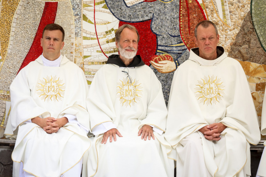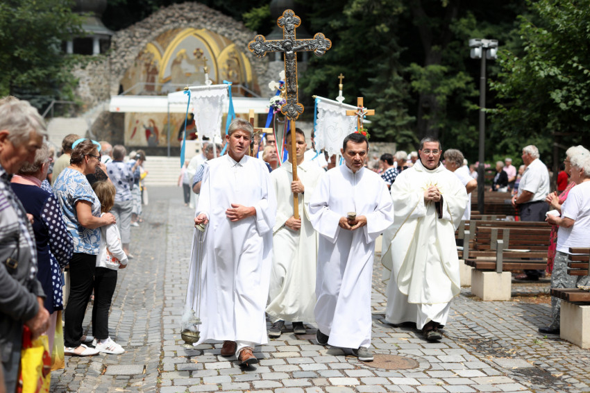A szentmisére a püspökök mellett bevonultak a koncelebráló papok, többek között Orosz Lóránt kegyhelyigazgató és Fejes Antal, a kegyhely lelkésze, valamint a zarándokokkal érkező lelkipásztorok és Ferencz Zoltán állandó diakónus. A Szűzanya szobrát máriás lányok hozták.