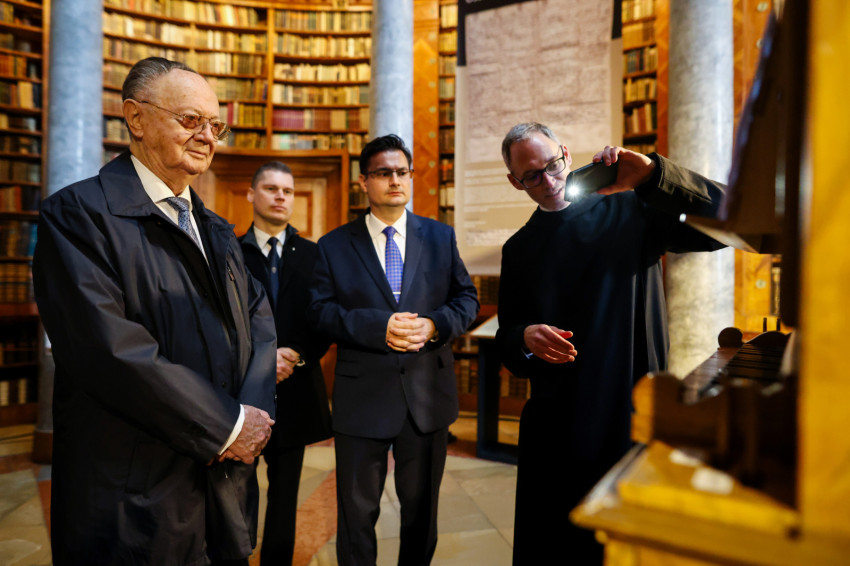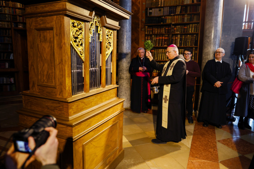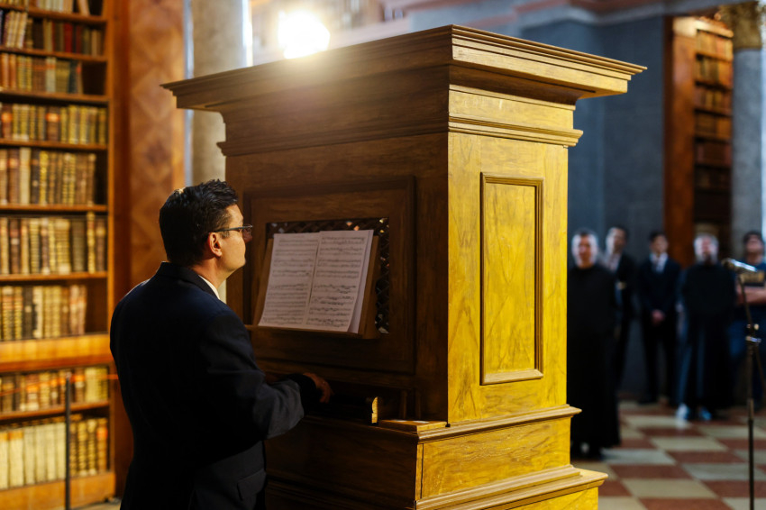 A Pannonhalmi Főapátsági Könyvtárban ezután Kiss Zsolt orgonaművész és Dejcsics Konrád mutatta be a XVIII. század elején készült, felújított Martin Zorkovsky-orgonát, amely az egyik legrégebbi magyarországi barokk orgona.