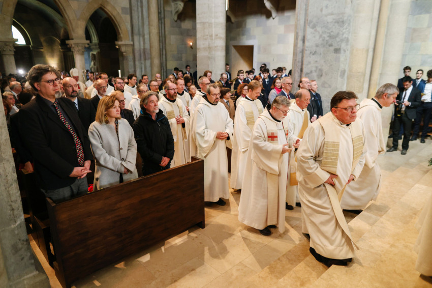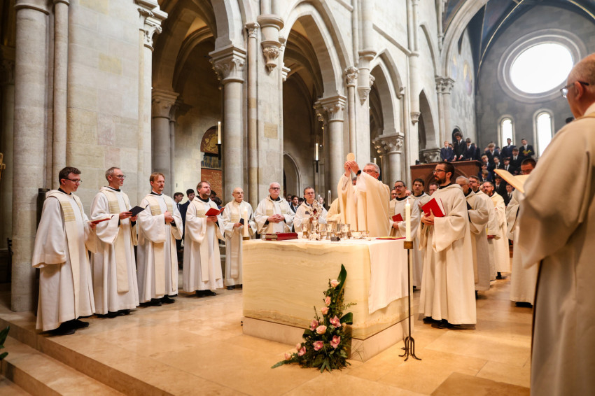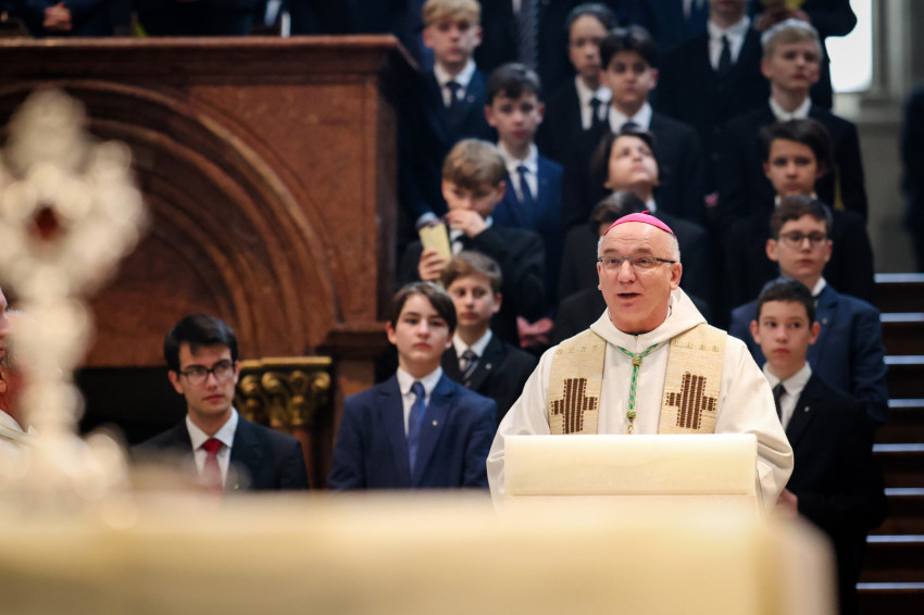 „Ami nemes, ami igazságos, ami tiszta, ami szeretetreméltó, ami jóhírű, ha valami kiváló és dicséretes, arra irányuljon figyelmetek” – Hortobágyi Cirill az ünneplő közösséget a napi szentleckéből, Szent Pál a Filippieknek írt leveléből vett részlettel köszöntötte az idén nyolcszáz éves Szent Márton-bazilikában.