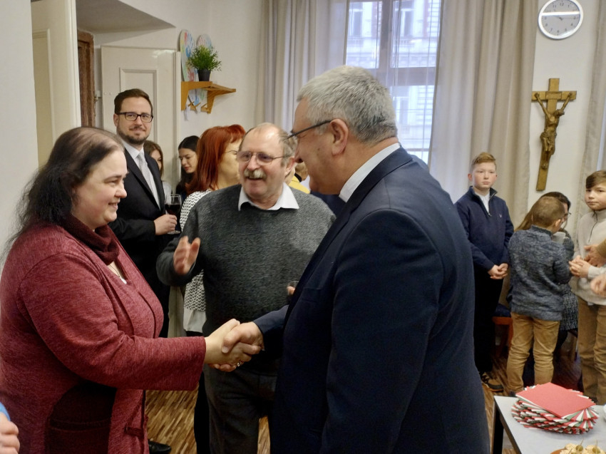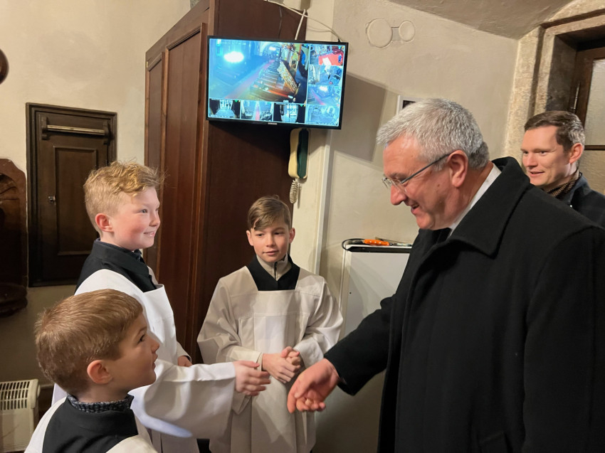 Az Adalbertinum diákotthonban – mely 2022-ben az MKPK támogatása révén nyitotta meg kapuit – lakó egyetemistáknak a hétvége során lehetősége nyilt a püspöknek személyesen bemutatni prágai otthonukat, amit jó hangulatú, kötetlen beszélgetés követett.