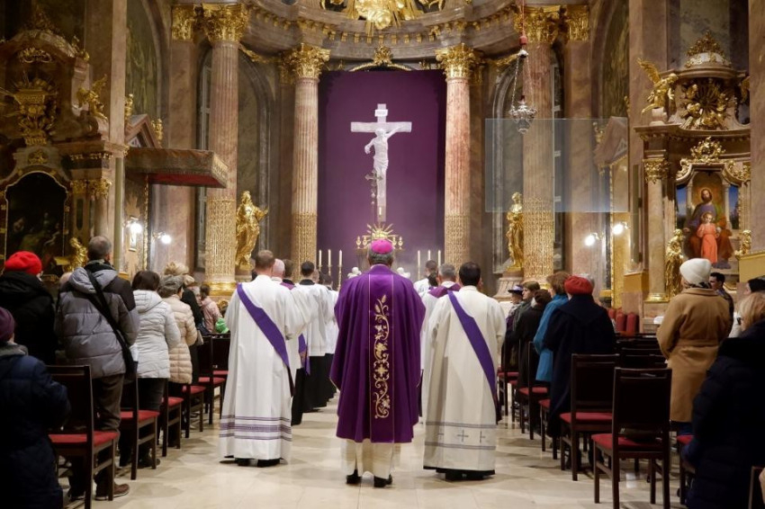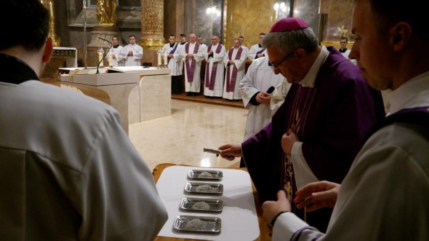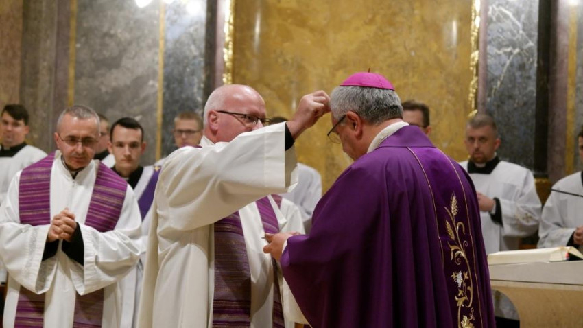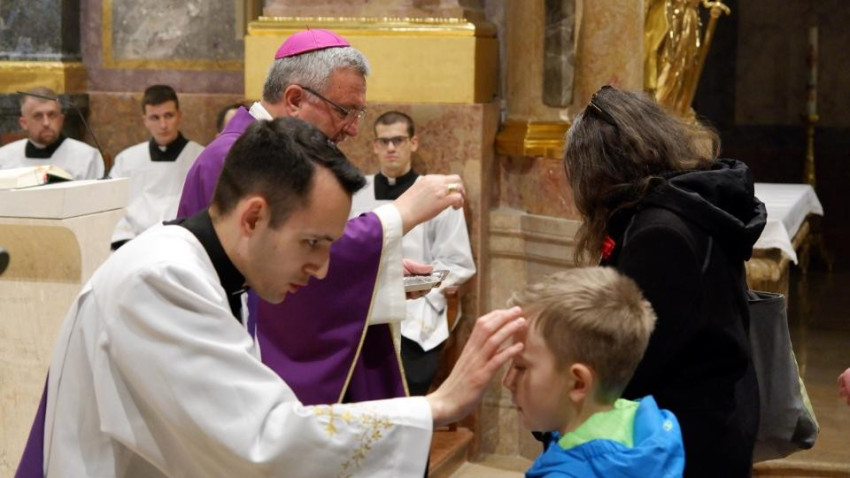 Veres András megyéspüspök szentbeszédében a hamvazkodás szertartásában elhangzó felhívásokról – „Emlékezz ember, hogy porból vagy, és porrá leszel” (vö. Ter 3,19); „Tartsatok bűnbánatot és higgyetek az evangéliumban” (Mk 1,15) – elmélkedett.