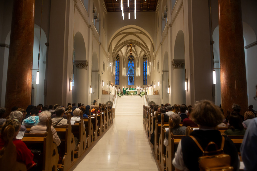 A szentmise elején Udvardy György veszprémi érsek köszöntötte püspöktársát, Veres András győri megyéspüspököt, a Magyar Katolikus Püspöki Konferencia (MKPK) elnökét, megköszönve neki, hogy elfogadta a meghívást Veszprémbe, hogy a KATTÁRS szombati napján ő mutassa be az esti szentmisét. Az érsek örömét fejezte ki azért is, hogy ismét együtt ünnepelheti az Eucharisztiát a KATTÁRS-ra látogató nővérekkel, szerzetes- és paptestvérekkel, diakónusokkal, veszprémi illetve az eseményre más városokból érkező hívekkel és zarándokokkal.