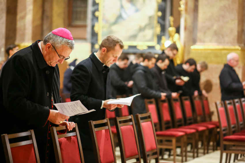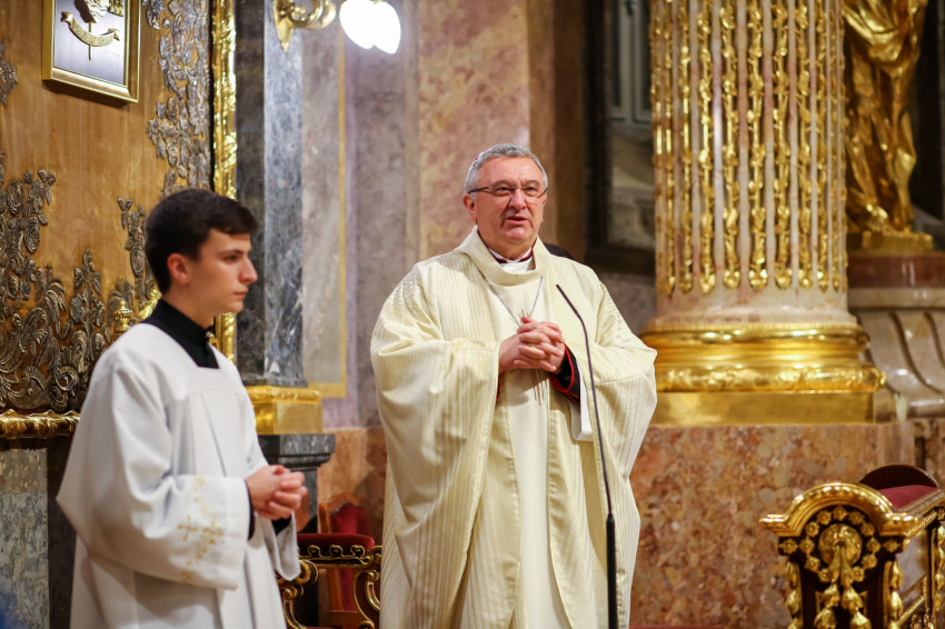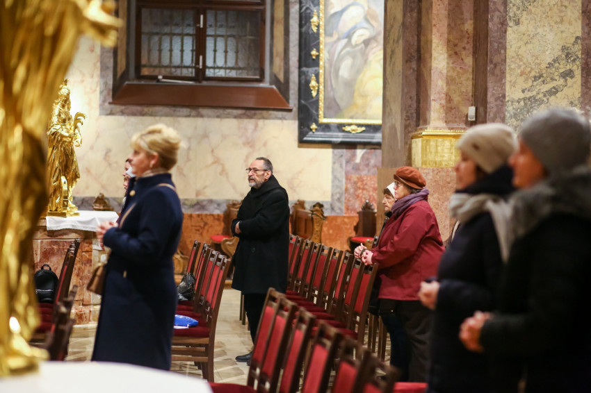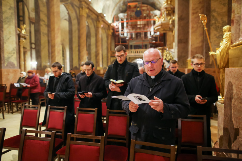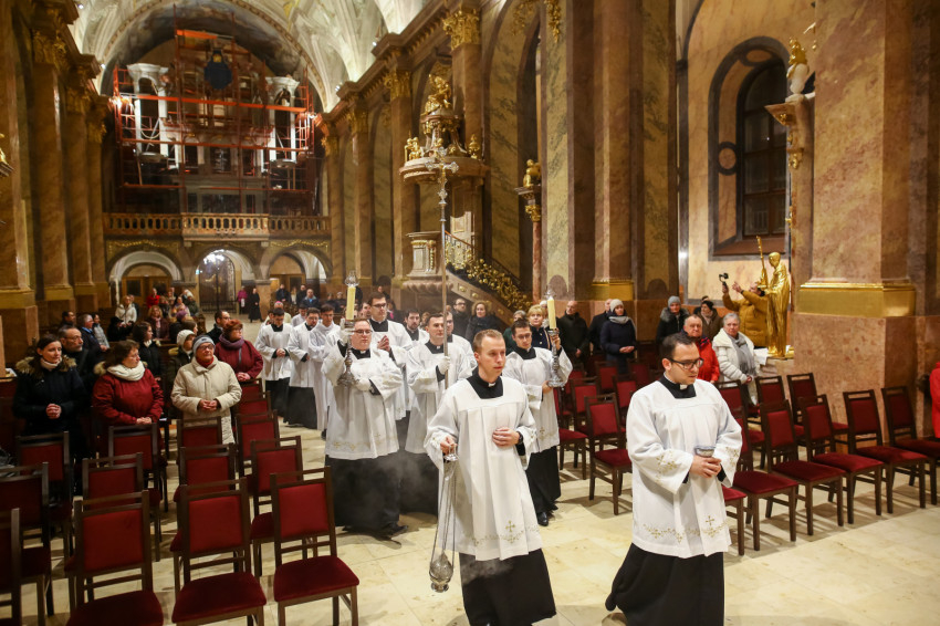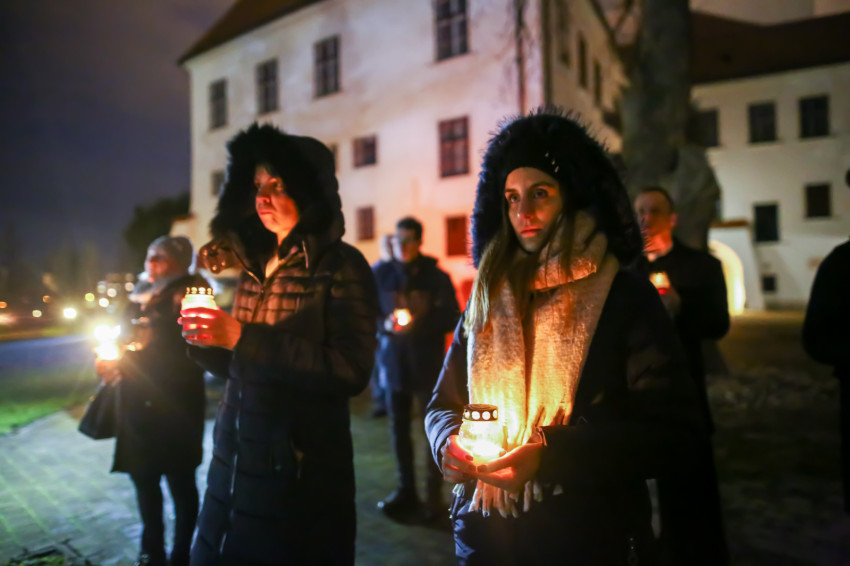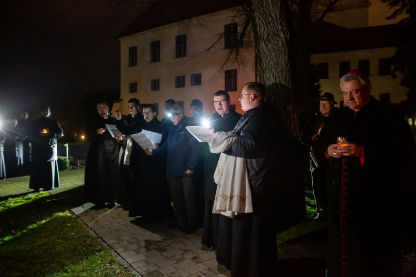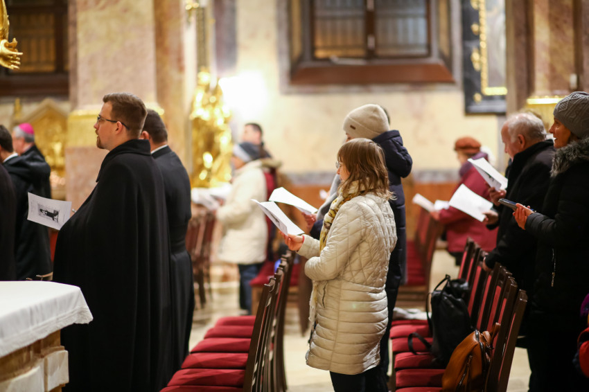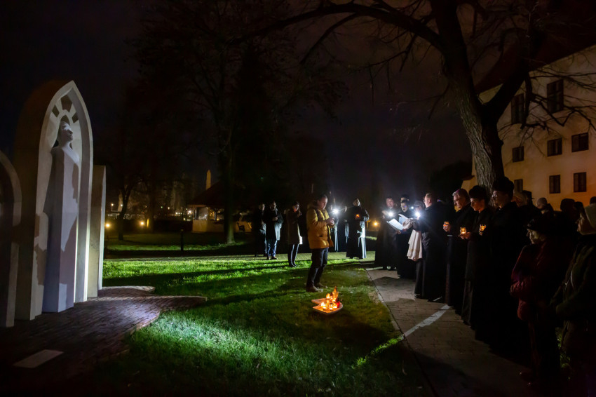 A résztvevők a mécseseket elhelyezték a szobor előtt, és átvonultak a székesegyházba, ahol Bognár István spirituális vezetésével elénekelték az esti dicséretet, orgonakíséret mellett.