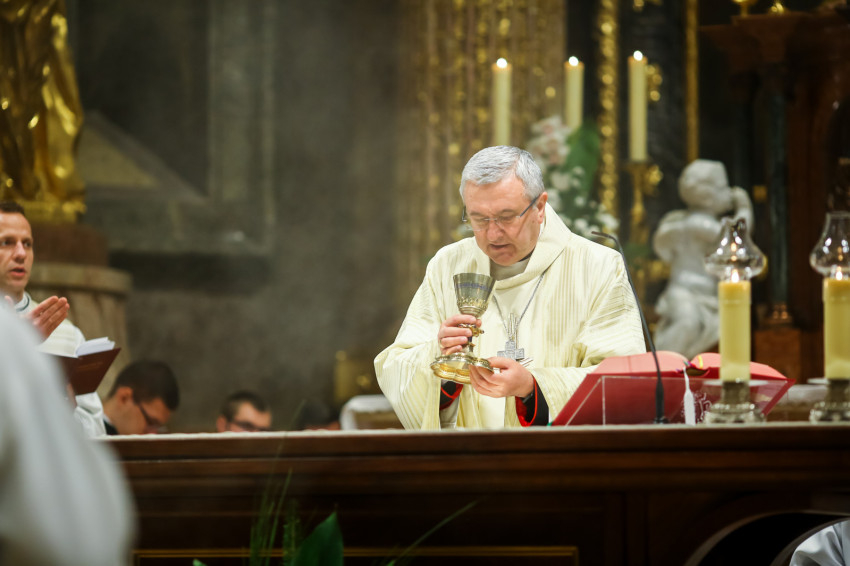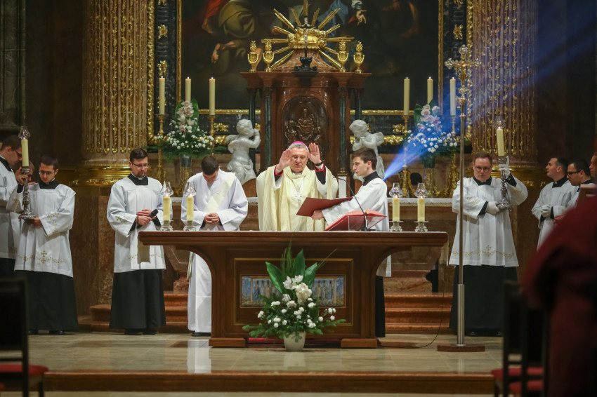 A főpásztor által bemutatott szentmisén koncelebrált Reisner Ferenc, a győri szeminárium rektora, Bognár István spirituális, Simon Dávid székesegyházi káplán és Végerbauer Richárd prefektus.