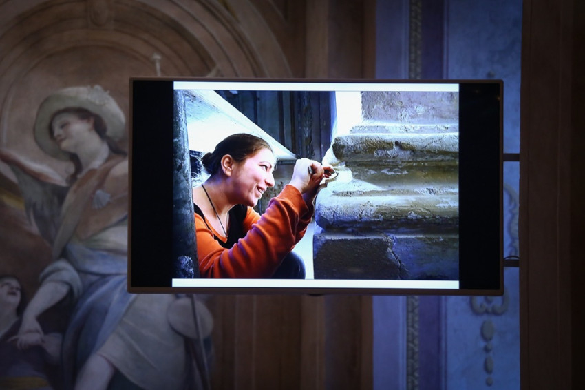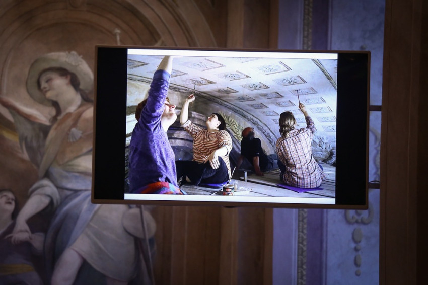 Végül képekkel szemléltetve számolt be a konzerválás és esztétikai helyreállítás céljával végzett restaurálás menetéről.