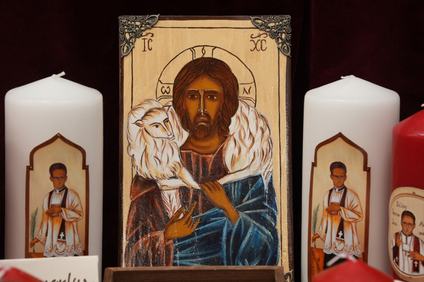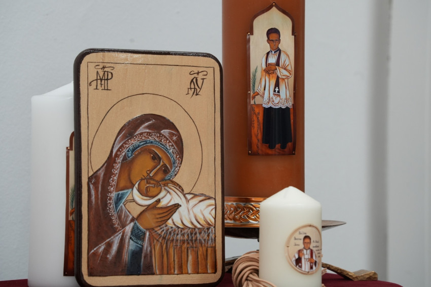 A néhány éve Franciaországból hazánkba települt Malika nővér – aki ikonfestészetet tanult Franciaországban – alkotásaiból látható néhány a tárlaton. Kiemelkednek ezek közül a Brenner Jánosról és Szent Tarzíciuszról készült alkotások, valamint egy szárnyasoltár, amelyen nemcsak a feltámadt Krisztust láthatjuk, hanem Mária életének néhány fontosabb eseményét is.