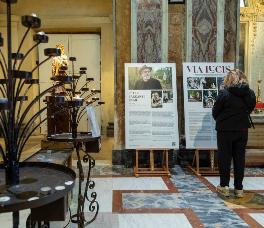 A Forum Romanumon álló Szent Franciska-bazilika főhajójában sorakoznak a művészi fotók. Tizennégy kőbe faragott stációt ábrázolnak, amelyeket a Kossuth-díjas Párkányi Raab Péter Péliföldszentkereszten, a fény útján, vagyis a szaléziak helyi rendházához vezető úton állított fel.