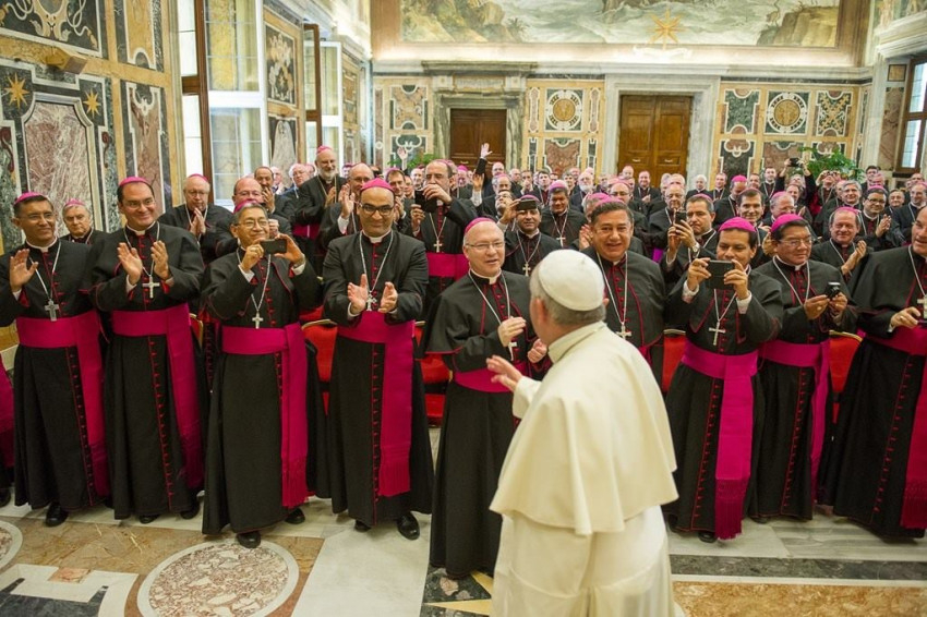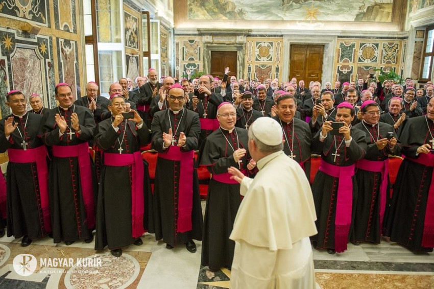„Tudom, kik vagytok, és nagy reményeket fűzök a bennetek rejlő képességekhez” – fordult szeretettel a Szentatya az egyház új püspökeihez, akiket Marc Ouellet és Leonardo Sandri bíboros kísért el a találkozásra, melynek színhelye az Apostoli Palota Kelemen-terme volt.